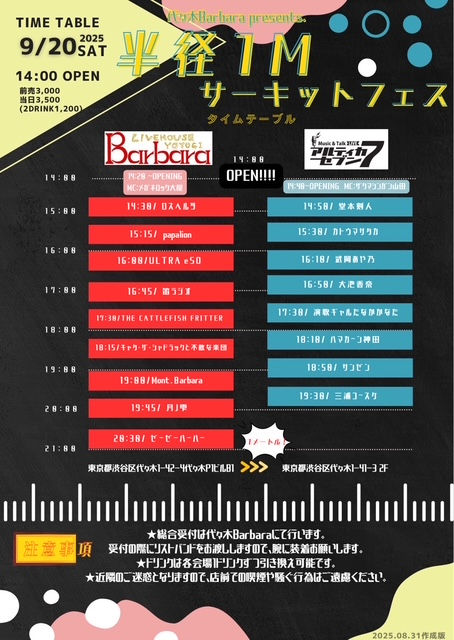 9/20(日)代々木Barbara×アルティカセブン サーキットフェス「半径1mサーキットフェスvol.02」